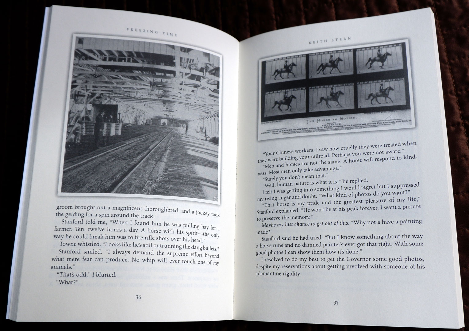 Freezing Time tells this story in the form of an historical novel. While maintaining accuracy and truth about Muybridge’s life and work, Freezing Time sets him into a dramatic context that is compelling to readers who may know little about him or his photography. The exciting adventure of his life and times as depicted in Freezing Time is like Indiana Jones meets The Time Machine mixed with elements of Jack The Ripper, Sherlock Holmes, and True Grit.